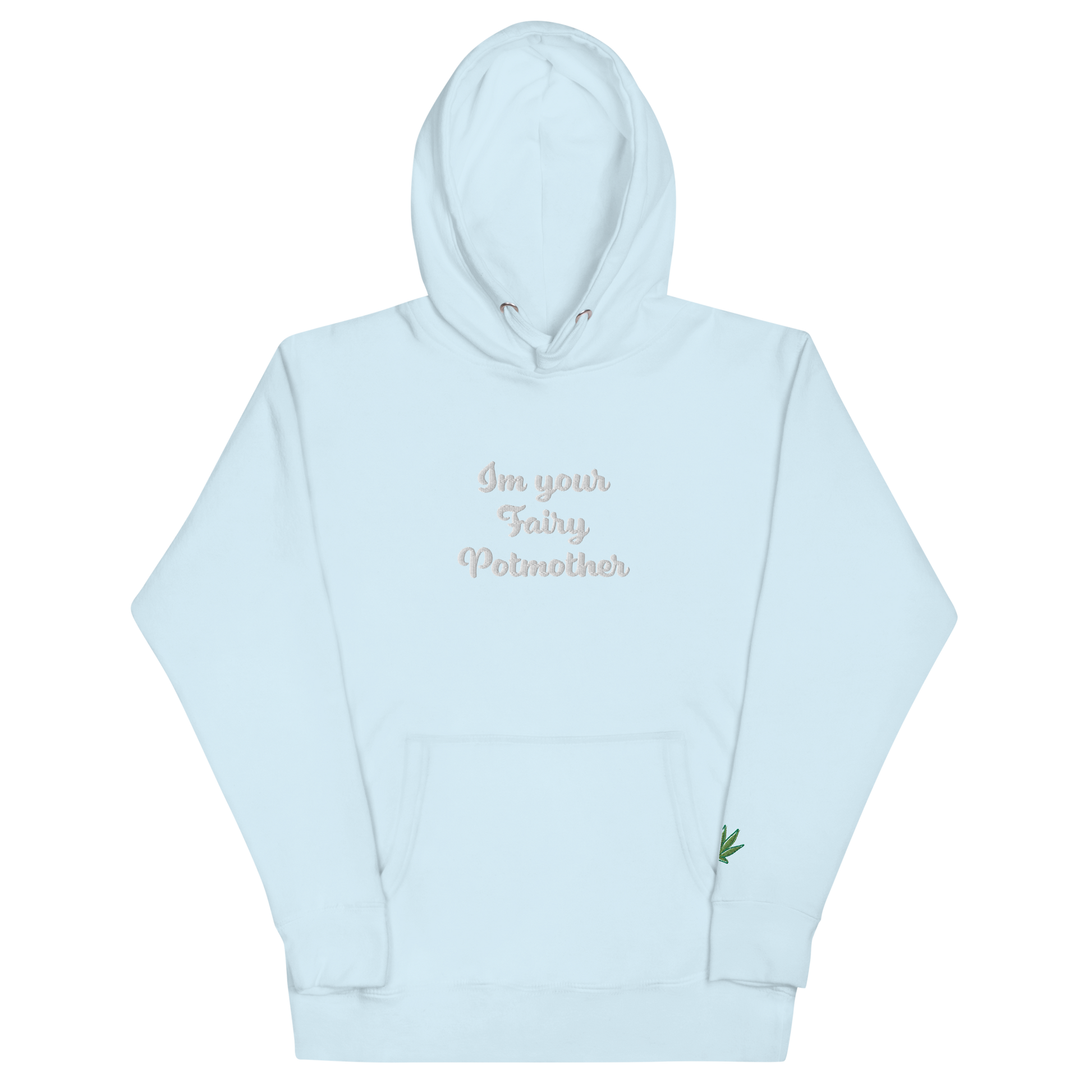 'Im Your Fairy Potmother' Hoodie features and embroidered design with a hidden hemp leaf on the sleeve! Exclusive Fairy Potmother design printed on the back as well! Wear it for your next smoke sesh or just out on the town <3