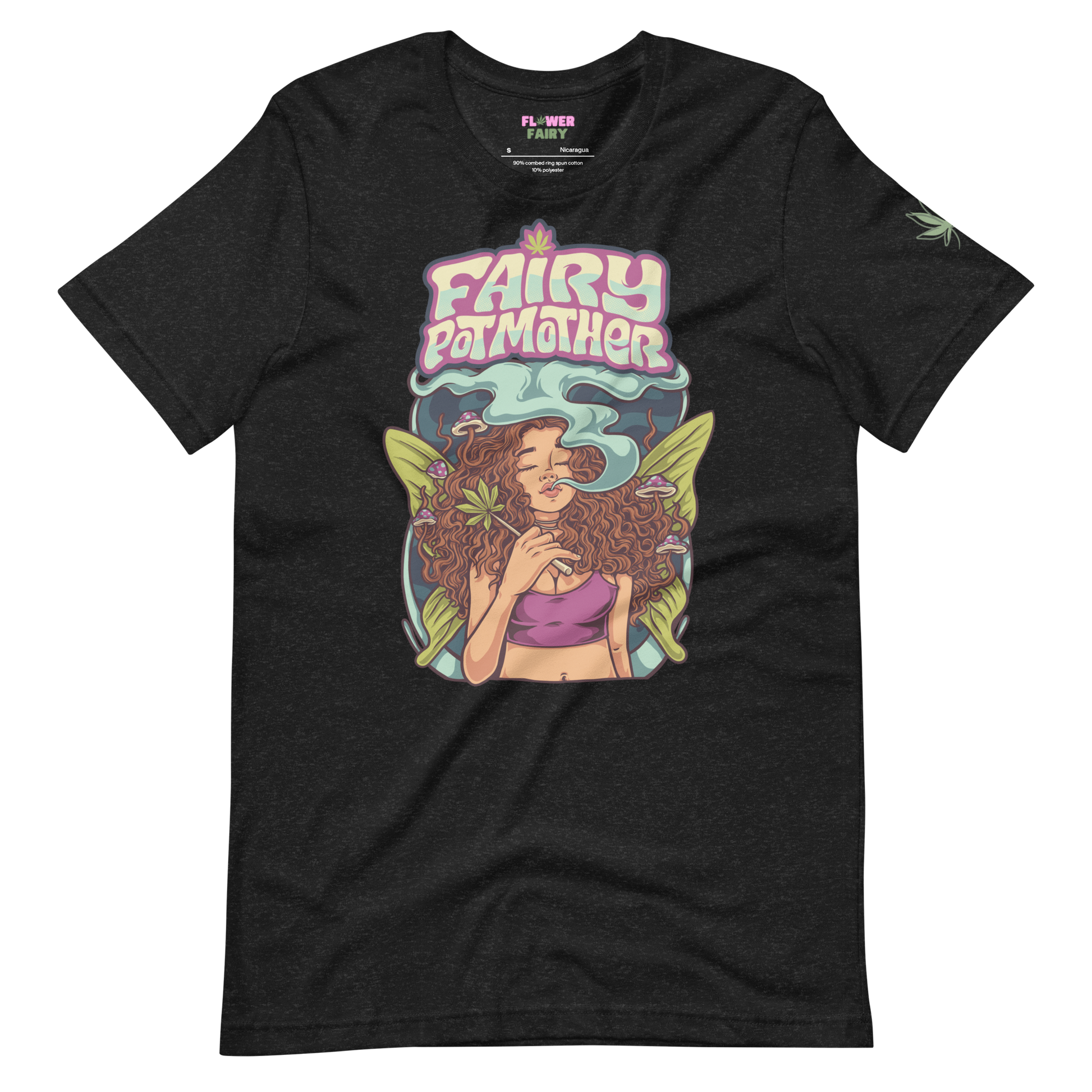 Your new Fairy Potmother Tee features an exclusive printed design with a hemp leaf on the sleeve! Wear it for your next smoke sesh or just out on the town <3